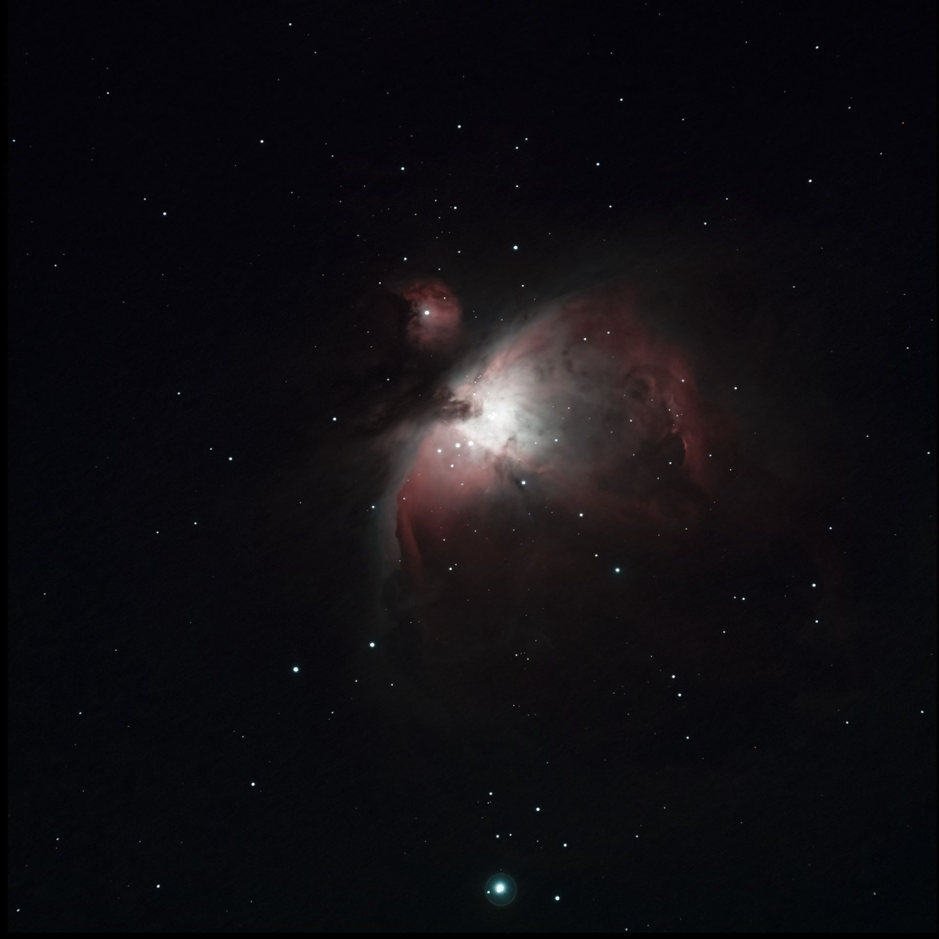 Cluster with Nebulosity RA:05 35.3 DEC:-05 23 Orion Mag. 4.0 Classe E+R Surf.Brigh.11 Dist.0,412Kpc NGC1976,LBN 974,Orion nebula AP105 Fl:610.0mm ZWO ASI533MC Pro T:14.3 Gain:200 Filter: None Exp:3x300s Airmass 0.0 Moon 2.5gg 1.4% ill. (407) |