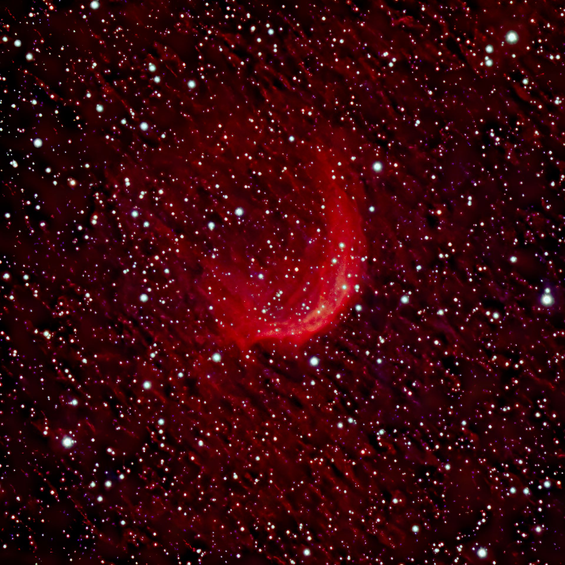 Remarkable Pretty Faint, Very large, Extended oResolvable (mottled, not resolved) Binuclear Planetary Nebula RA:22 29.6 DEC:-20 50 Aquarius Mag. 6.3 Classe 4(3) Surf.Brigh.13.6 Dist.0,201Kpc PK 36-57.1,ESO 602-PN22,CS=13.5, Helix nebula Helix Nebula;low surf brightness remarkable object pretty faint very large elongated ASKAR 185 APO 0,8x Fl:1028.8mm ZWO ASI533MC Pro T:5.0 Gain:300 Filter: IR Exp:4x900s Airmass 2.4 Moon 3.2gg 9.0% ill. (25) |