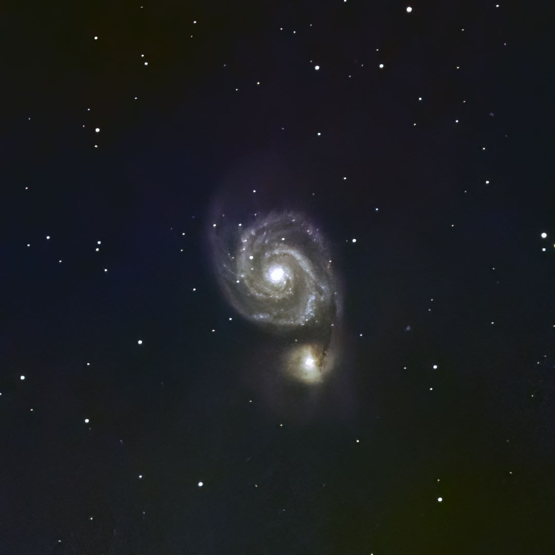 Galaxy RA:13 29.9 DEC:+47 12 CVN Mag. 8.4 Classe Sbc Surf.Brigh.12,9 Redshift Z=0,001544 Speed 463 km/s Dist.8,6Mpc PGC 47404 NGC5194,UGC 8493,MCG 8-25-12,IRAS 13277+4727,KCPG 379A,CGCG 246-8,Arp 85,VV 1,VV 403,Whirlpool galaxy AP TRAVELER 105 EDF Fl:657.8mm ZWO ASI294MM Pro T:15.8 Gain:300 Filter: IR:900s R+G+B 300s Airmass 1.0 Moon 29.4gg 0.3% ill. (117) |