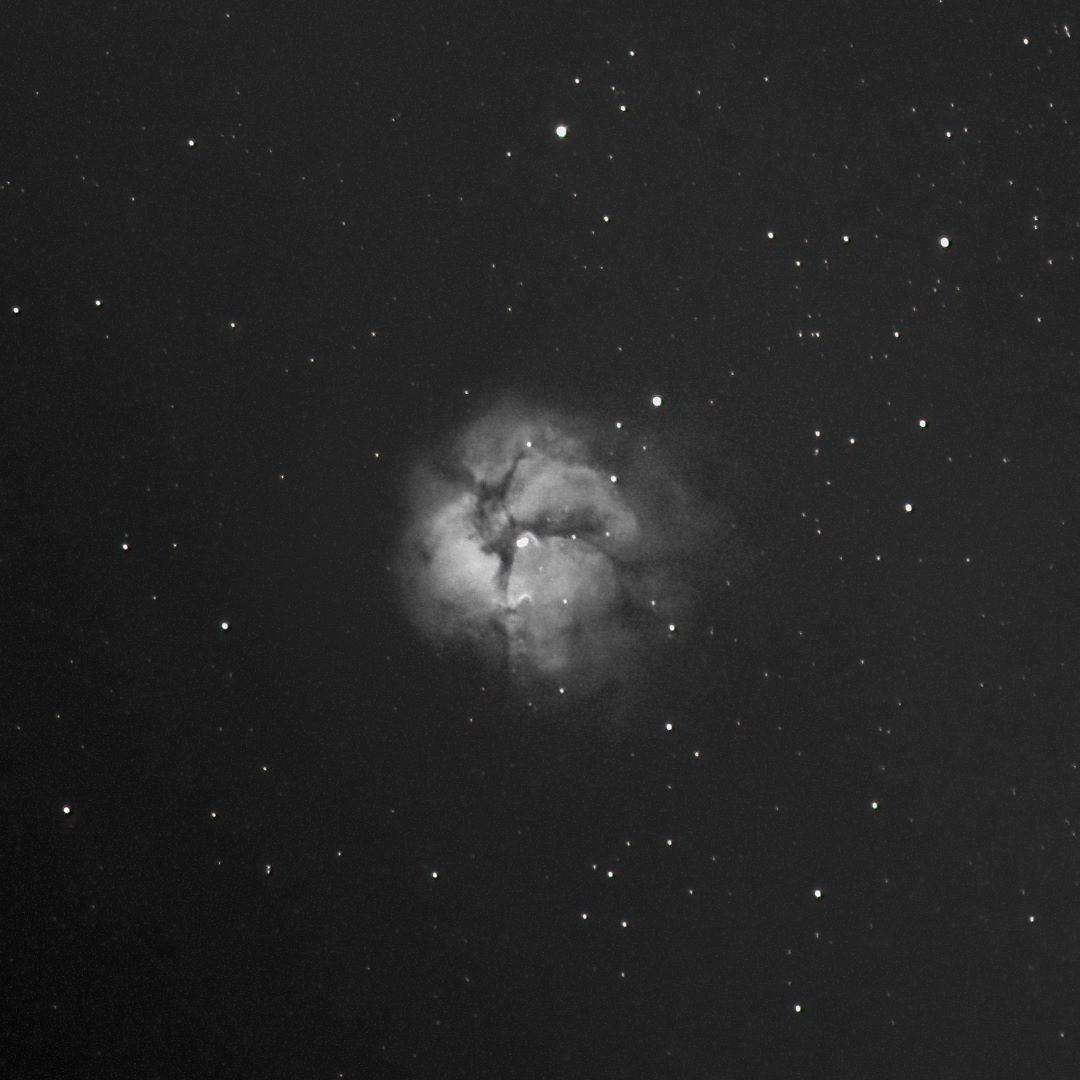 Cluster with Nebulosity RA:18 02.7 DEC:-22 58 Sagittarius Mag. 6.3 Classe E+* Surf.Brigh.13 Dist.1,6Kpc NGC6514,OCL 23,ESO 521-N*13,LBN 27,Trifid nebula Trifid nebula;sev dark lanes;H IV 41 & V 10;D* HN 40 invl very large involved CELESTRON RASA 8" f/2 Fl:398.7mm ZWO ASI294MM Pro T:-10.0 Gain:300 Filter: Ha Exp:90s Airmass 5.1 Moon 4.3gg 16.4% ill. (42) |
