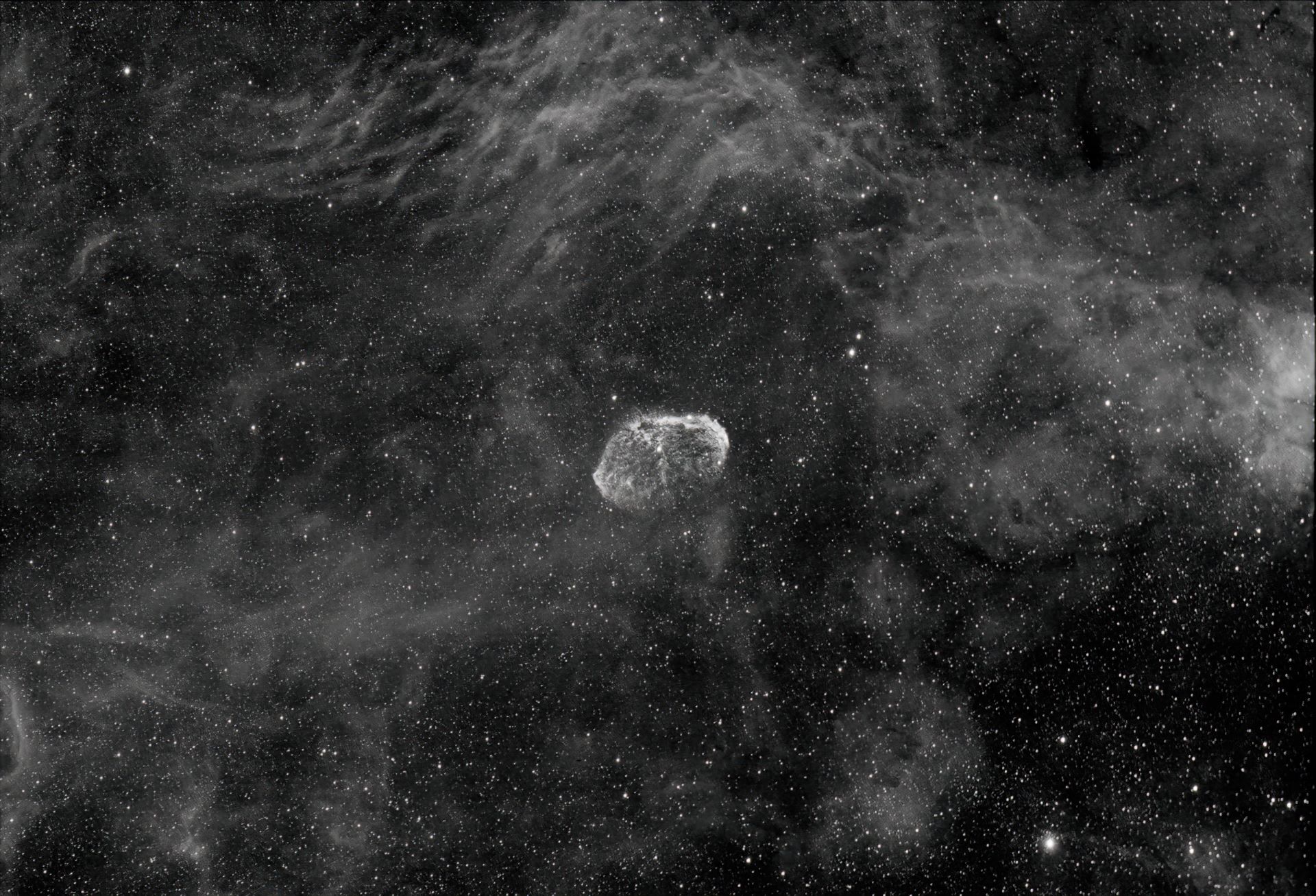 Faint, Very large, Very much extended, Double star Attached Bright Nebula RA:20 12.1 DEC:+38 21 Cygnus Mag.10.0 Classe E Dist.1,45Kpc LBN 203,Sh2-105,Crescent nebula H IV 72;Crescent Neb;Wolf-Rayet * invl faint very large attached CELESTRON RASA 8" f/2 Fl:399.5mm ZWO ASI294MM Pro T:-10.0 Gain:300 Filter: Ha Exp:900s Airmass 1.0 Moon 4.3gg 16.4% ill. (44) |