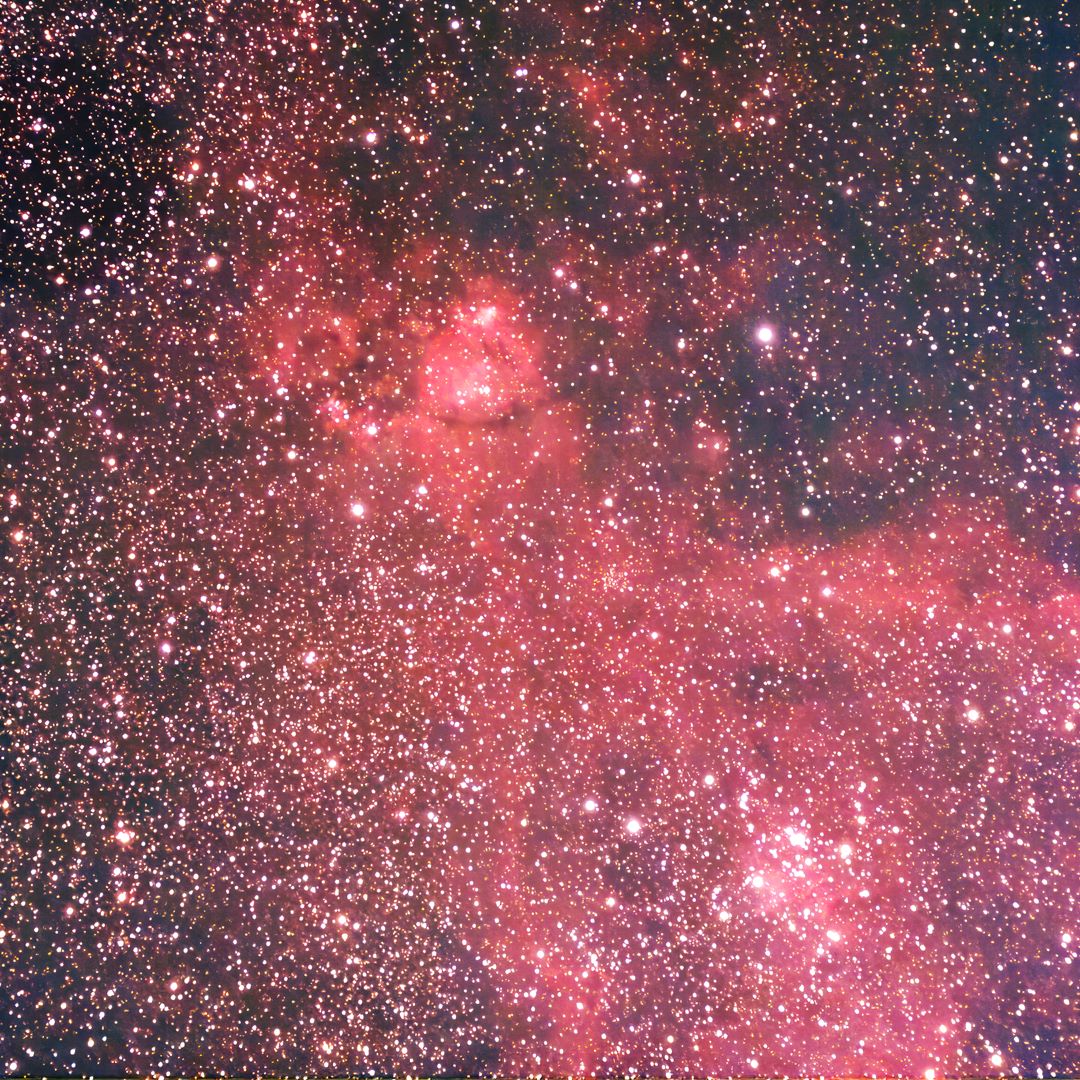 Preceding (westward) atChevelure of Nebulosity Bright Nebula RA:02 25.8 DEC:+61 59 Cassiopeia Mag.99.9 Classe E Dist.2,3Mpc NGC 896,LBN 645,CED 6,SG 1.04,Min 2-57,narrrow dark lane n-s, SNR ? Brightest portion of IC 1805;vast neby incl cluster Mel 15 very large faint ASKAR V 60 REDUCER f/4.5 Fl:275.3mm ZWO ASI533MC Pro T:-10.0 Gain:300 Filter: None Exp:3x900s Airmass 1.3 Moon 6.8gg 39.5% ill. (29) |