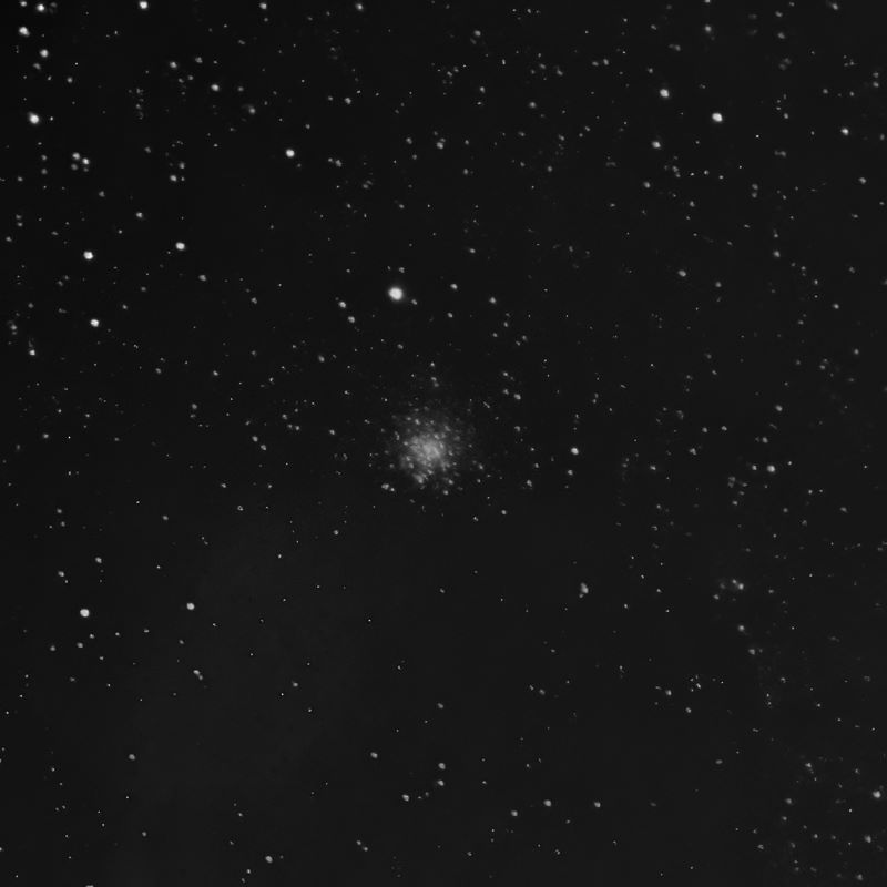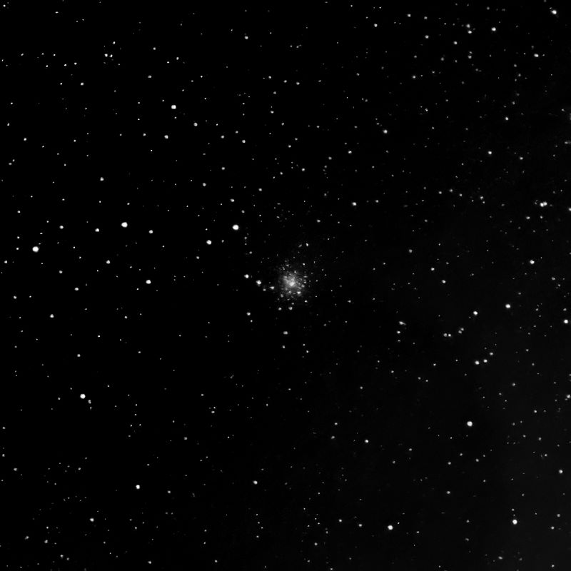 Globular Cluster RA:18 31.4 DEC:-32 21 Sagittarius Mag. 7.7 Classe V Surf.Brigh.11 Dist.8,8Kpc NGC6637,GCL 69,ESO 457-SC14 bright large round well resolved VIXEN FL80S WT f/8 Fl:526.8mm Reducer: WO 0,8xZWO ASI294MM Pro T:-10.0 Gain:300 Filter: IR Exp:3x300s Airmass 5.1 Moon 16.8gg 98.5% ill. (711) |