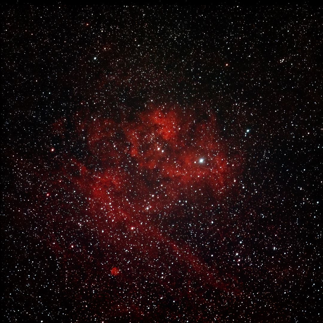 Faint, Diffused Bright Nebula RA:20 50.8 DEC:+44 21 Cygnus Mag. 8.0 Classe E Dist.0,6Kpc LBN 350,CED 183C,Pelican nebula Pelican Nebula;w IC 5067;56 Cyg invl faint diffuse RASA 8 Fl:400.0mm ZWO ASI533MC Pro T:-7.0 Gain:300 Filter: None Exp:3600s Airmass 1.1 Moon 27.3gg 10.4% ill. (218) |