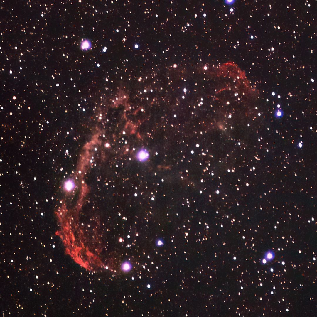 Faint, Very large, Very much extended, Double star Attached Bright Nebula RA:20 12.1 DEC:+38 21 Cygnus Mag.10.0 Classe E Dist.1,45Kpc LBN 203,Sh2-105,Crescent nebula H IV 72;Crescent Neb;Wolf-Rayet * invl faint very large attached BORG 101ED f/6.3 Fl:515.8mm ZWO ASI533MC Pro T:-5.0 Gain:196 Filter: LPRO Exp:4x2400s Airmass 0.0 Moon 21.8gg 67.7% ill. (336) |