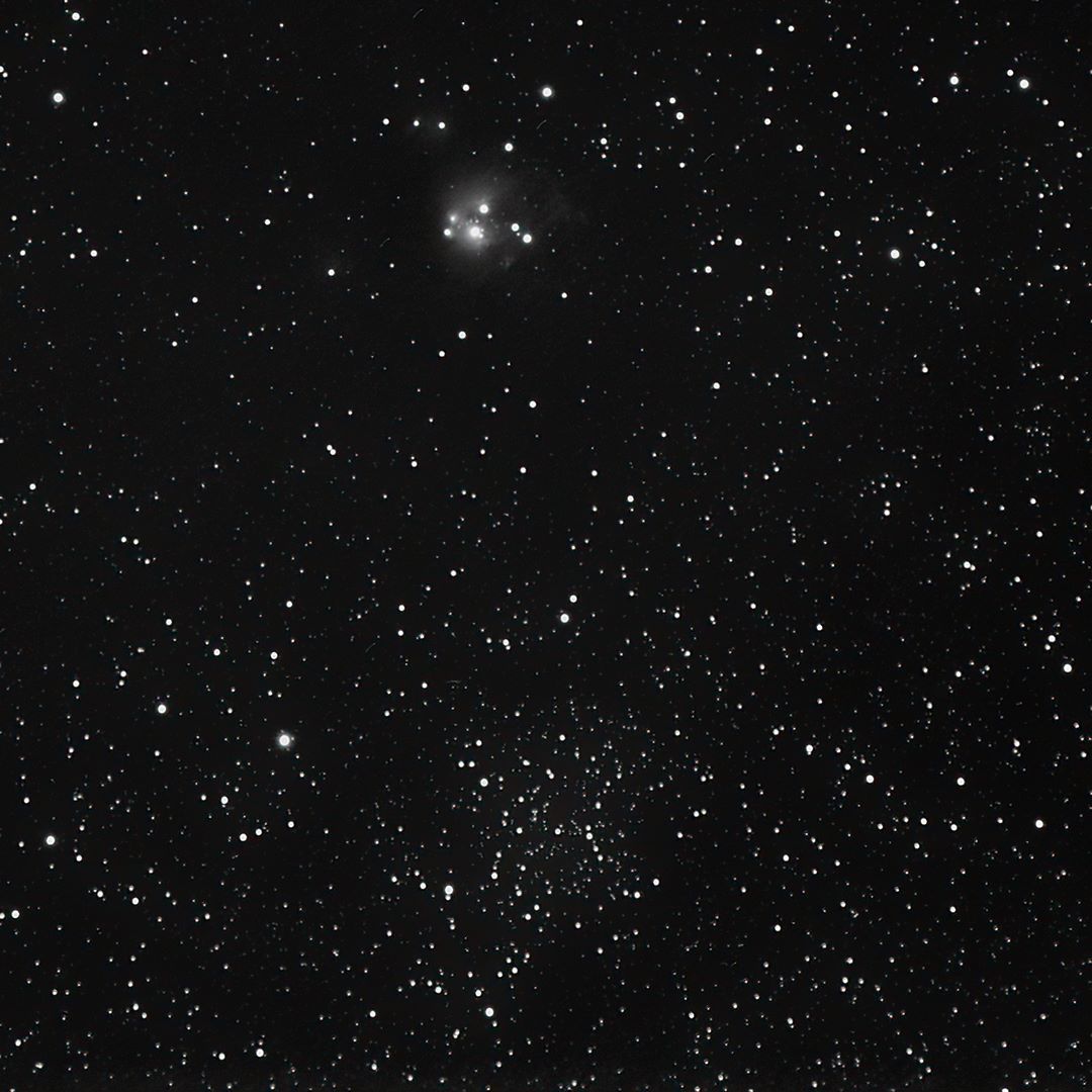 Cluster, Considerably large, Considerably Rich, Preceding (westward) Compressed, Stars 11...14 Open Cluster RA:21 45.2 DEC:+65 46 Cepheus Mag. 9.3 Classe II 2 r Dist.1,686Kpc OCL 241 H VII 66 cluster AP105 Fl:652.0mm ZWO ASI294MM Pro T:-10.0 Gain:300 Filter: LPRO Exp:4x2970s Airmass 1.1 Moon 9.8gg 65.4% ill. (195) |