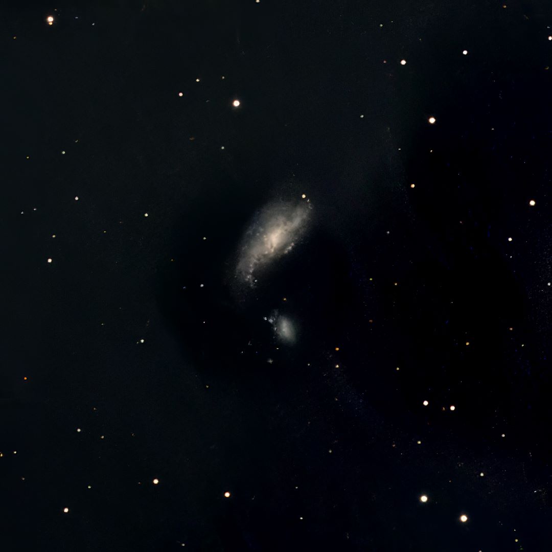 Very bright, Very large, Much extended 130°, Resolvable (mottled, not resolved), South following of 2 Galaxy RA:12 30.6 DEC:+41 39 CVN Mag. 9.8 Classe SBcd Surf.Brigh.12,9 Redshift Z=0,001885 Speed 565 km/s Dist.8,68Mpc PGC 41333 UGC 7651,MCG 7-26-14,CGCG 216-8,KCPG 341B,Arp 269,VV 30 H I 198;disrupted;P w NGC 4485 @ 3.5' very large very rich south following ASTRO-PHYSICS 105 TRAVELER EDF f/5.8 Fl:661.2mm Flattener AP ZWO ASI533MC Pro T:-5.0 Gain:300 Filter: IR Exp:6x900s Airmass 1.7 Moon 28.9gg 2.7% ill. (673) |