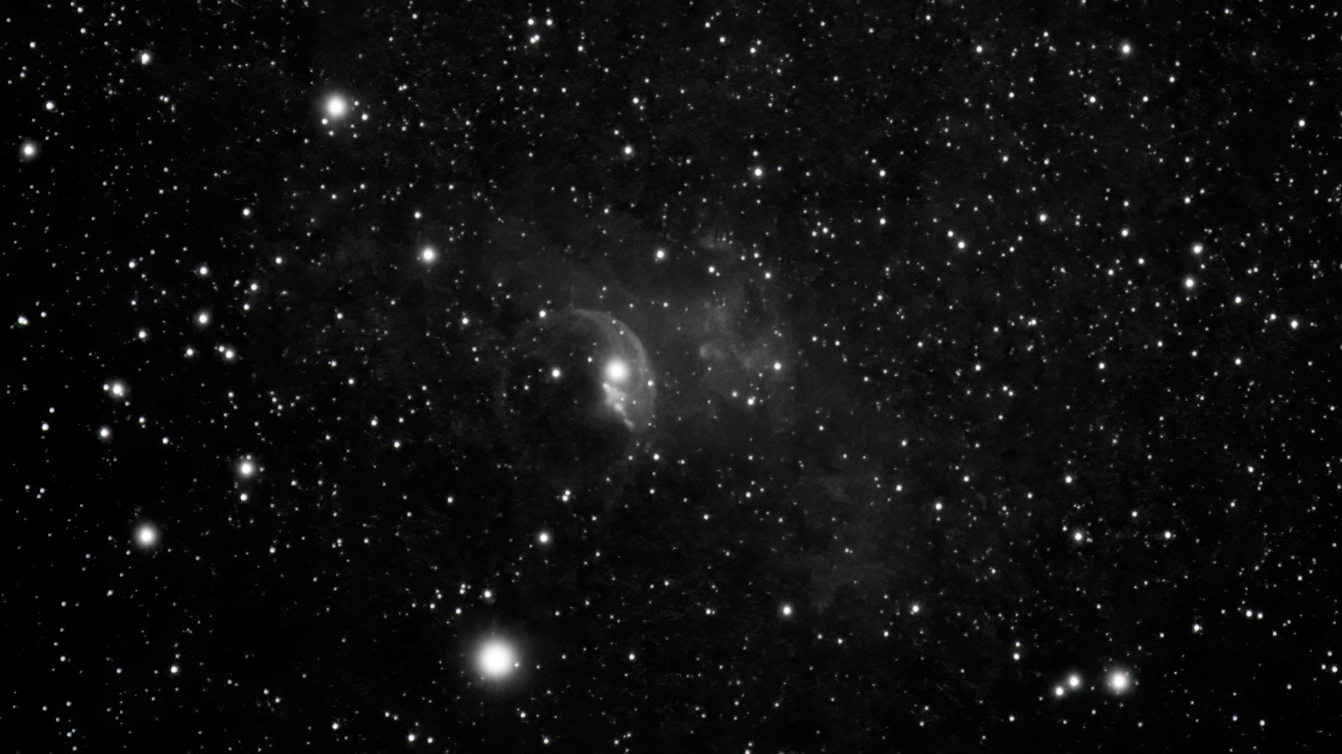 Very faint, Star 8 Involved, involving Little Excentric Extremely North tResolvable (mottled, not resolved) Irregular Considerably Bright Nebula RA:23 20.2 DEC:+61 11 Cassiopeia Mag.11.0 Classe E Dist.3,4Kpc LBN 549,in Sh2-162, Bubble nebula H IV 52;Bubble Nebula;L neb ring involved little ASTRO-PHYSICS 105 TRAVELER EDF f/5.8 Fl:661.6mm Reducer: AP 0,8x ZWO ASI183MM T:26.0 Gain:200 Filter: None Exp:5x300s Airmass 0.0 Moon 12.2gg 90.7% ill. (444) |