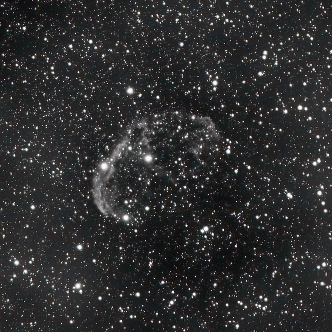Faint, Very large, Very much extended, Double star Attached Bright Nebula RA:20 12.1 DEC:+38 21 Cygnus Mag.10.0 Classe E Dist.1,45Kpc LBN 203,Sh2-105,Crescent nebula H IV 72;Crescent Neb;Wolf-Rayet * invl faint very large attached SHARPSTAR 65Q f/6.5 Fl:420.0mm ZWO ASI294MM Pro T:-10.0 Gain:300 Filter: LPRO Exp:4x900s Airmass 1.3 Moon 8.3gg 50.7% ill. (235) |