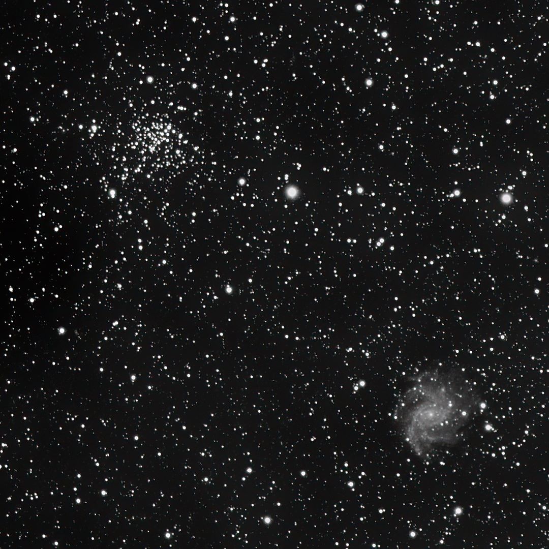 Cluster, Pretty Large, Extremely Rich, Preceding (westward) Compressed Middle (or in the middle), Stars 11...16 Open Cluster RA:20 31.5 DEC:+60 40 Cepheus Mag. 7.8 Classe I 1 m Dist.1,185Kpc OCL 217 H VI 42;Gal N6946 38' SE cluster pretty large WO 81 GT IV f/5.9 Fl:390.0mm ZWO ASI294MM Pro T:-10.0 Gain:300 Filter: LPRO Exp:3x1800s Airmass 1.1 Moon 11.8gg 83.7% ill. (192) |