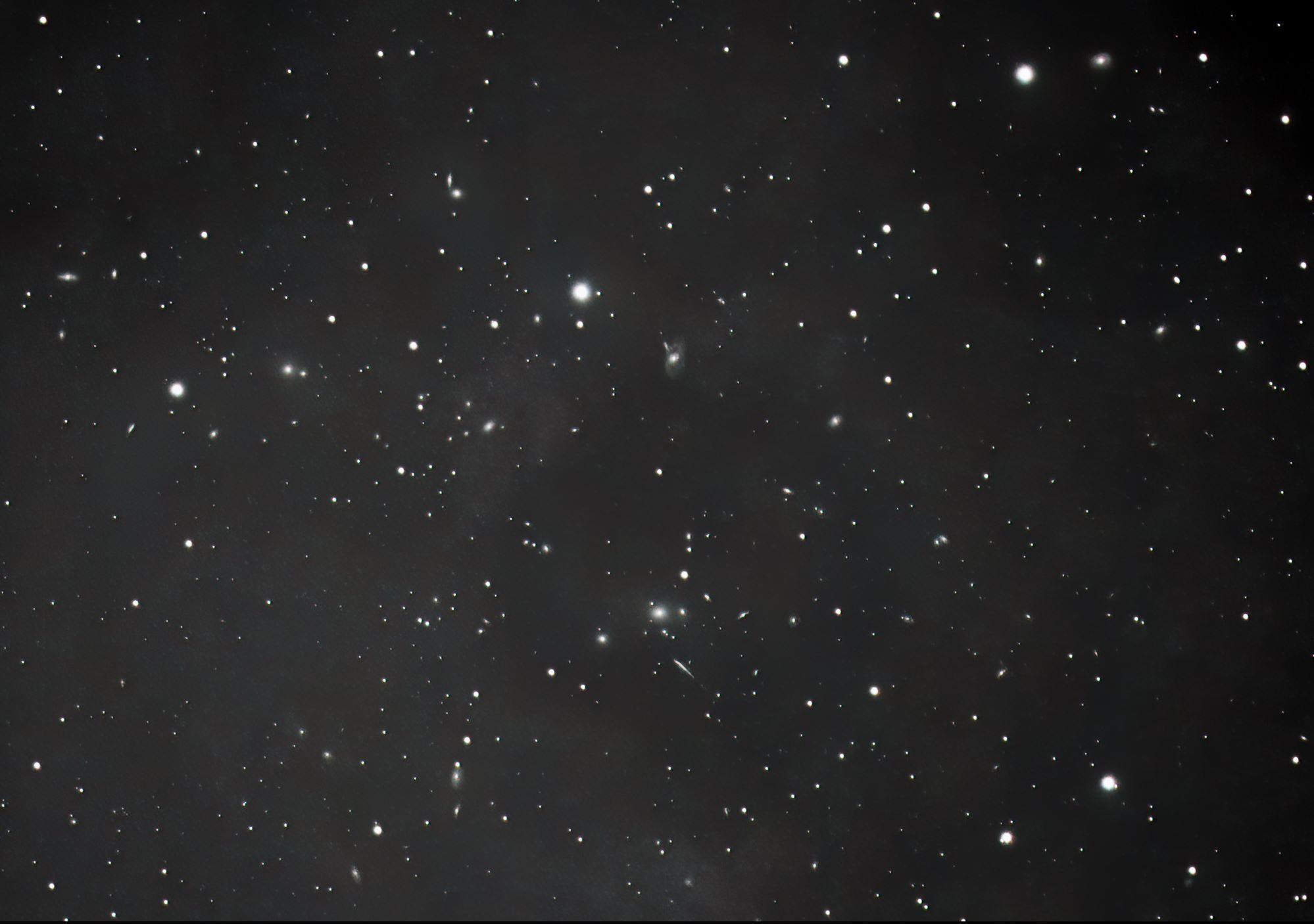 Galaxy cluster RA:11 44.5 DEC:+19 50 Leo Mag.14.0 Classe 2 I II-III More galaxies >14 mag than any galaxy cluster; 117 galaxies pretty faint pretty large round small SHARPSTAR 65Q f/6.5 Fl:423.9mm ZWO ASI294MM Pro T:-10.0 Gain:300 Filter: IR Exp:4x900s Airmass 1.2 Moon 29.4gg 1.2% ill. (621) |