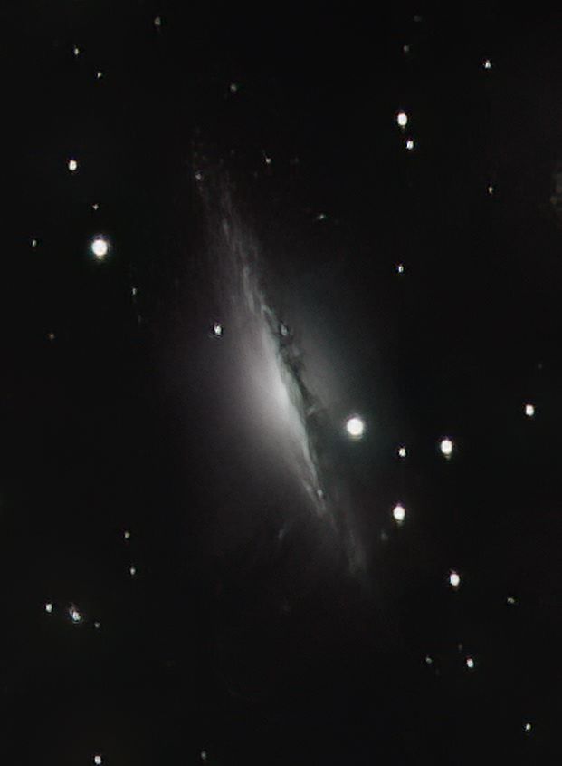Pretty Faint, Considerably large, Irregular Extended 80°, Brighter Middle (or in the middle), Star 11 North 1' Galaxy RA:02 41.8 DEC:+00 27 Cetus Mag.10.6 Classe SBb Surf.Brigh.13,7 Redshift Z=0,003314 Speed 992 km/s Dist.16,63Mpc PGC 10208 UGC 2173,MCG 0-7-81,CGCG 388-95,IRAS 02391+0013,"Sombrero" H I 1= II 6;Nearly edge-on spiral w equatorial dust lane pretty faint TEC140ED Fl:990.0mm ZWO ASI294MM Pro T:-10.0 Gain:300 Filter: None Exp:7x830s Airmass 1.8 Moon 18.0gg 91.0% ill. (155) |