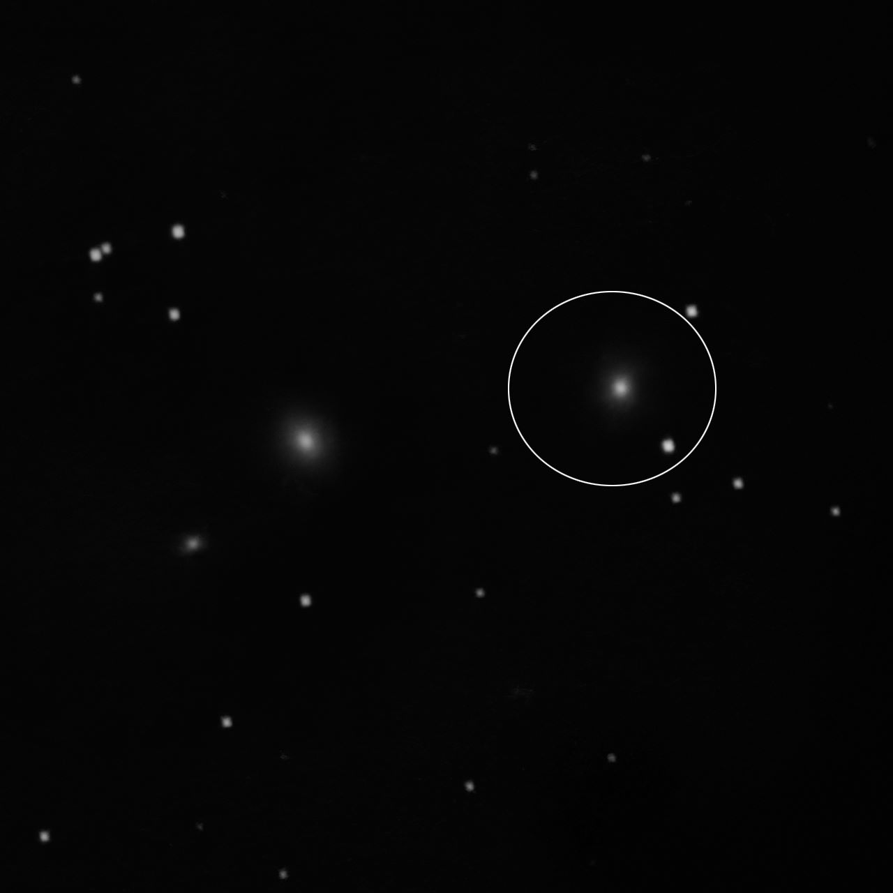 Very faint, Small in angular size Galaxy RA:10 47.4 DEC:+06 03 Sextans Mag.13.8 Classe S pec Surf.Brigh.12 Redshift Z=0,019447 Speed 5773 km/s PGC 32231 UGC 5891,MCG 1-28-7,CGCG 38-13,KARA 443,NPM1G +06.0259 small BORG101 Fl:640.0mm ZWO ASI178MM T:15.0 Gain:297 Filter: None Exp:77s Airmass 0.0 Moon 6.5gg 21.8% ill. (813) |