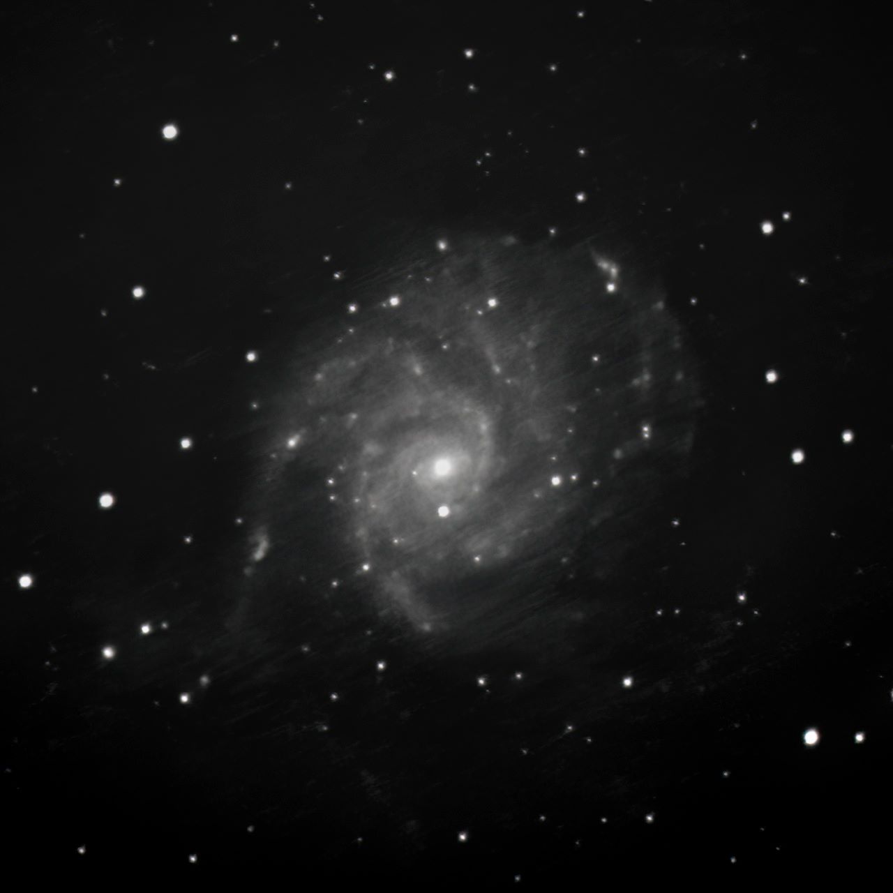 Very faint, Pretty Large, Round, Very Little Brighter Middle (or in the middle), Coarse/ly North North w Middle (or in the middle) 101 Diffuse Nebula in a Galaxy RA:14 03.2 DEC:+54 18 Ursa Major Mag.99.9 Classe E+* Dist.6,92Mpc HII in M 101 knot on the arm of NGC 5457 = M 101 pretty large round CELESTRON RASA 8" f/2 Fl:398.5mm ZWO ASI183MM T:31.7 Gain:294 Filter: None Exp:4x300s Airmass 0.0 Moon 20.8gg 67.7% ill. (454) |