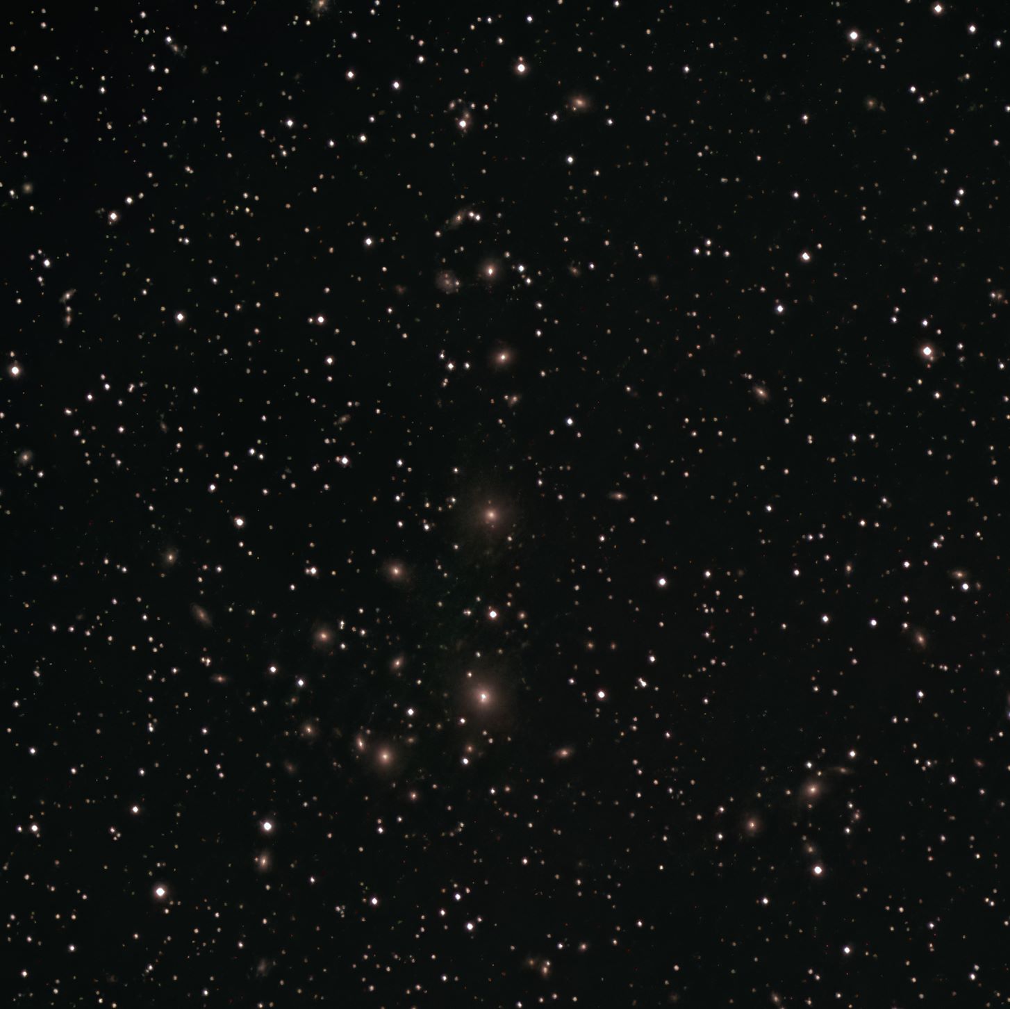 Galaxy cluster RA:03 19.7 DEC:+41 30 Perseus Mag.13.0 Classe 2 0 II-III Centered on NGC 1275;Milky Way makes ID difficult; 88 galaxies degrees pretty bright ASTRO-PHYSICS 105 TRAVELER EDF f/5.8 Fl:651.7mm Flattener 0,8x AP Reducer: AP 1,0x ZWO ASI533MC Pro T:-9.9 Gain:200 Filter: None Exp:4x900s Airmass 1.2 Moon 9.7gg 64.8% ill. (847) |