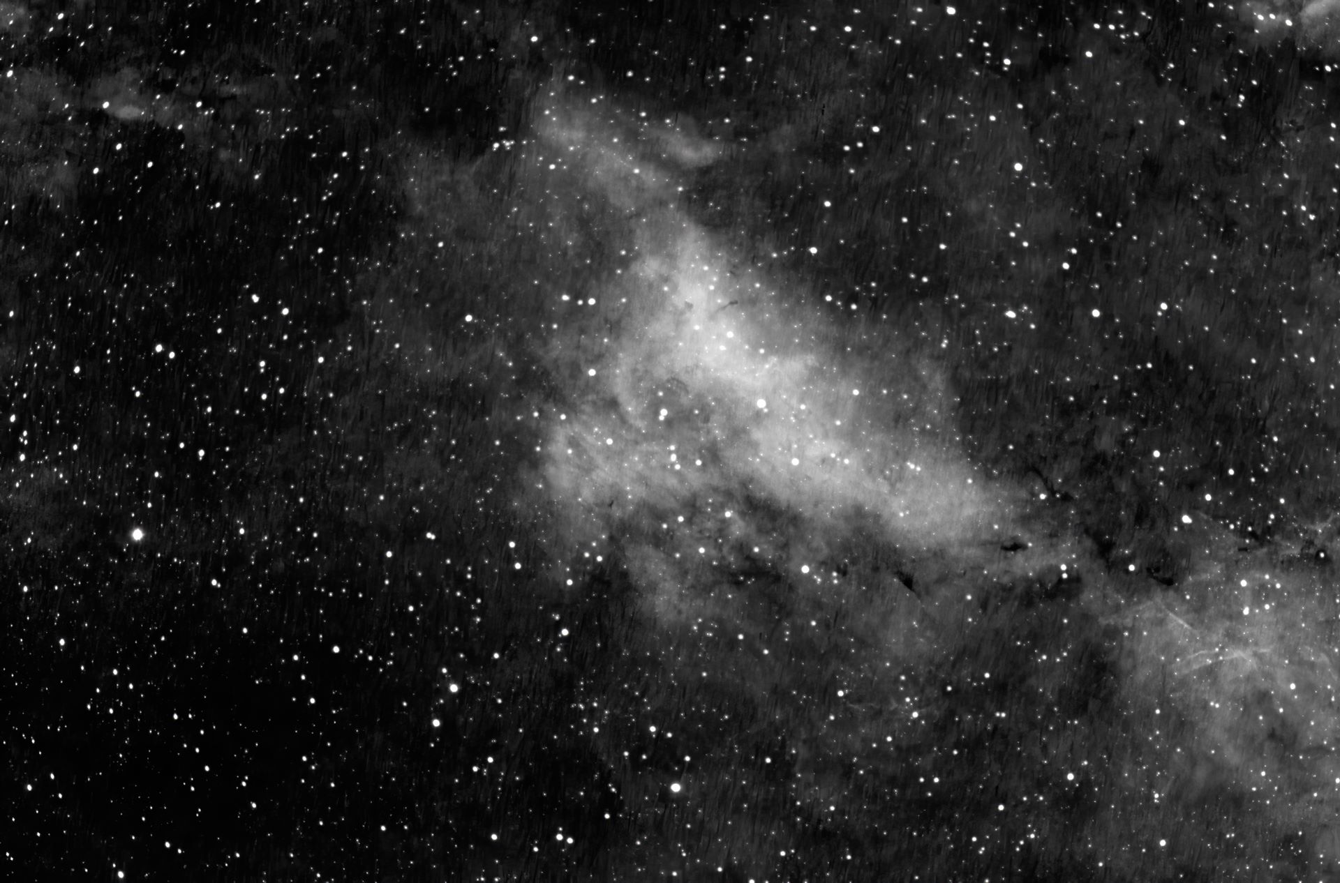 Faint, Most extremely Large, Diffused Nebula uLittle oSouth Irregular ty Bright Nebula RA:21 01.8 DEC:+44 12 Cygnus Mag. 4.0 Classe E Dist.0,795Kpc LBN 373,North America nebula H V 37?;North America nebula;Cl NGC 6997 invl faint diffuse CELESTRON RASA 8" f/2 Fl:398.5mm ZWO ASI183MM T:29.8 Gain:294 Filter: None Exp:6x300s Airmass 0.0 Moon 0.7gg 0.1% ill. (449) |