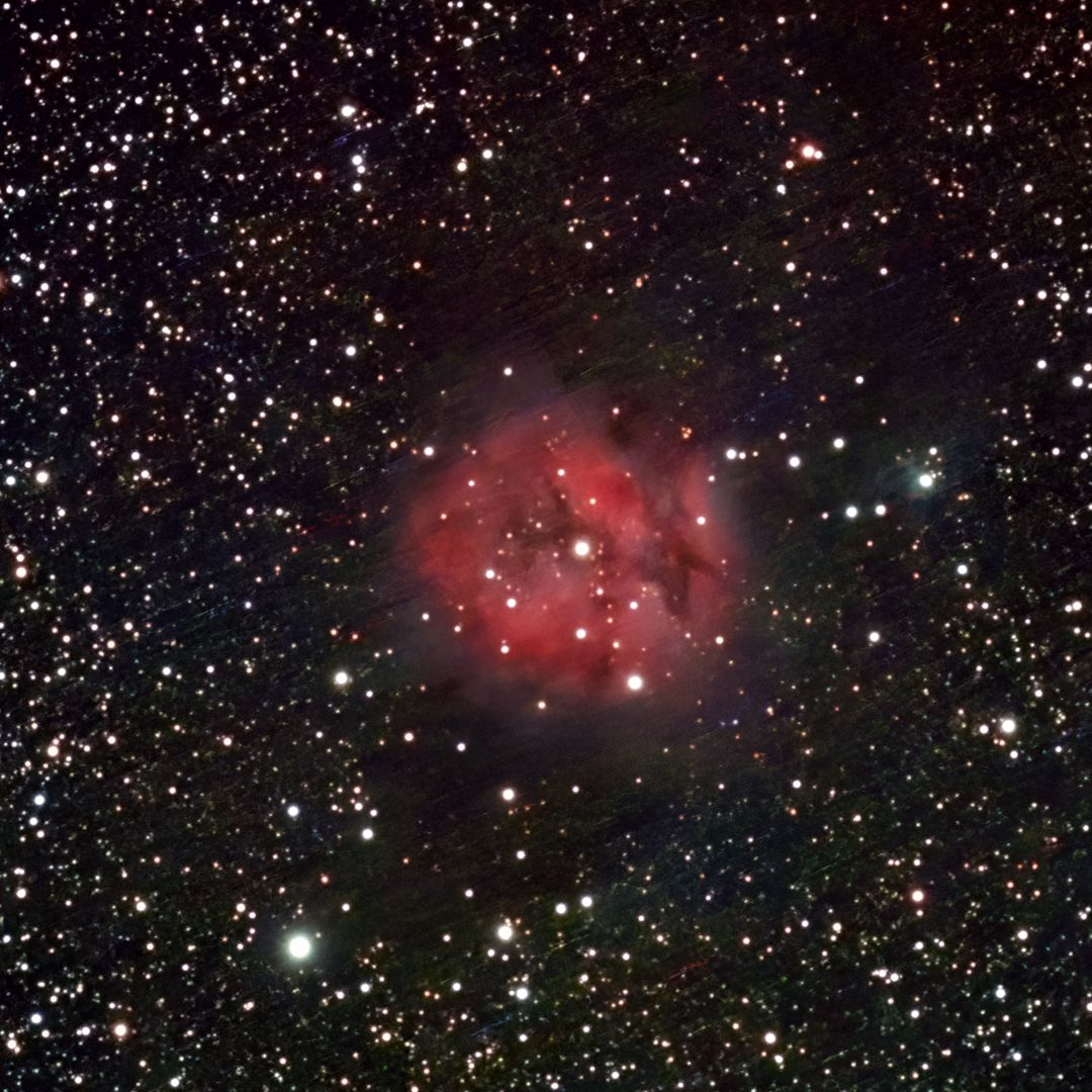 Pretty Bright, Very large, Irregular figure, Star 9.5 in Middle (or in the middle) Cluster with Nebulosity RA:21 53.4 DEC:+47 16 Cygnus Mag.10.0 Classe IV 2 p n Dist.0,78Kpc OCL 213,LBN 424,Cocoon nebula Cocoon neb;at end of dark streamer B168 faint large much BORG 101ED f/6.3 Fl:640.0mm ZWO ASI533MC Pro T:-5.0 Gain:196 Filter: LPRO Exp:6x600s Airmass 0.0 Moon 21.8gg 67.7% ill. (334) |