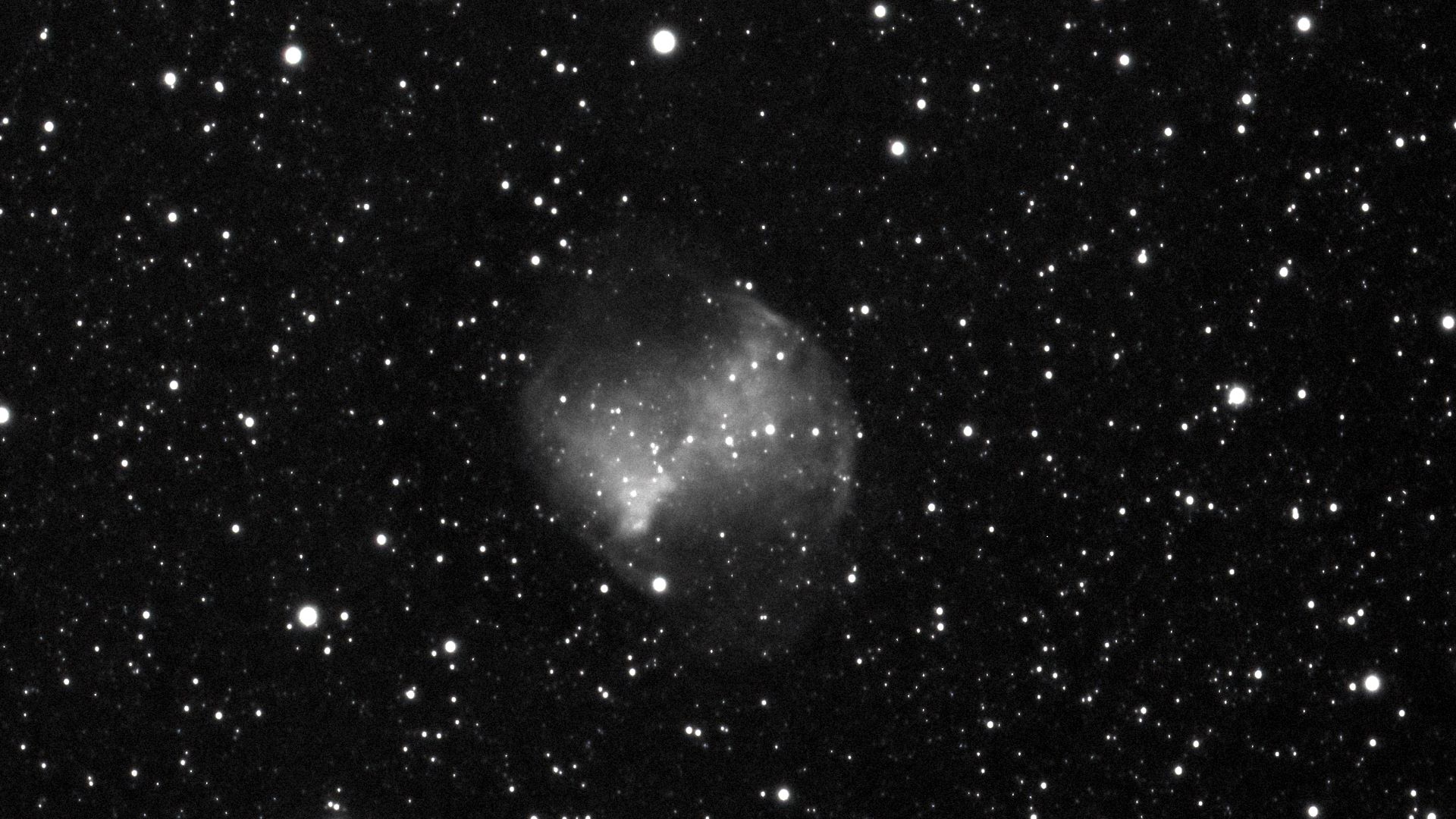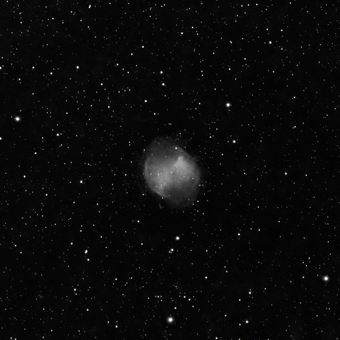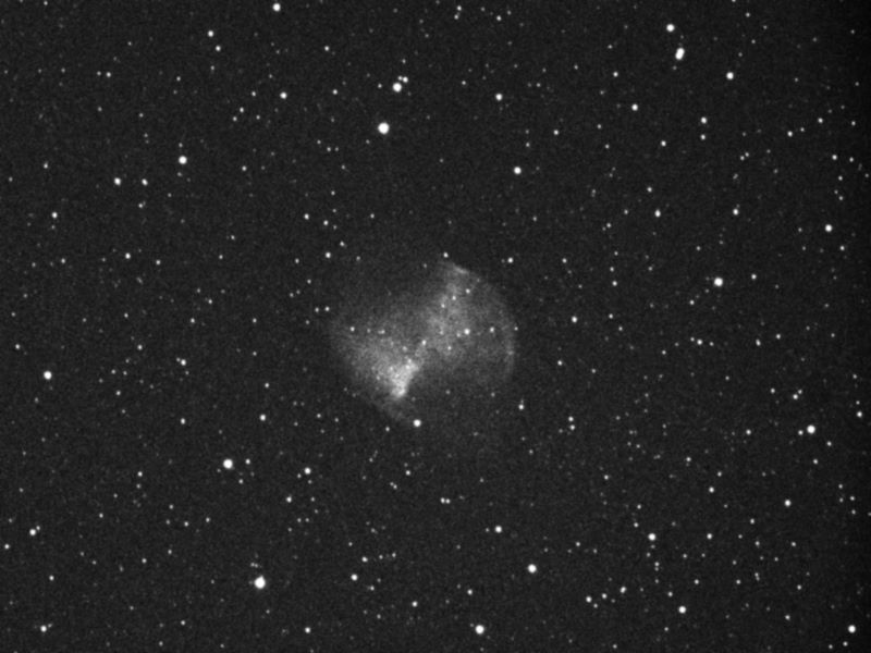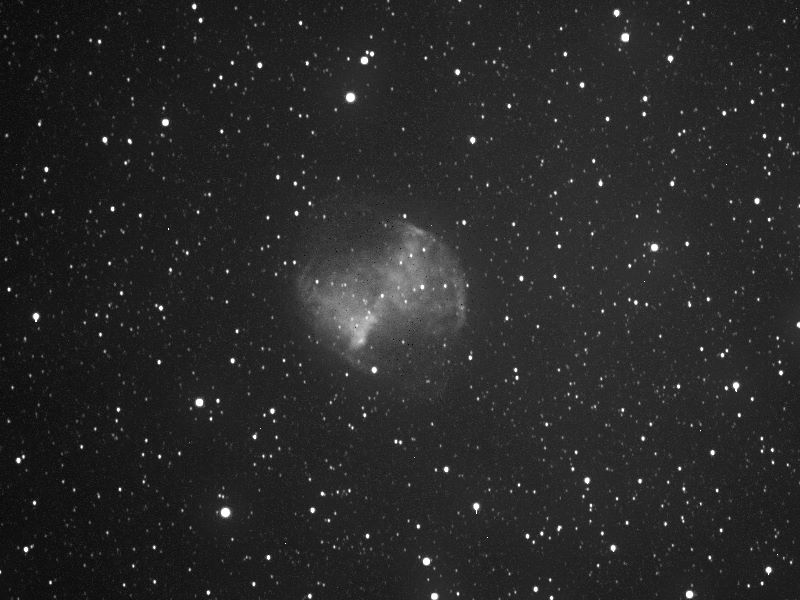 Planetary Nebula RA:19 59.6 DEC:+22 43 Vulpecula Mag. 7.3 Classe 3(2) Surf.Brigh.11.2 Dist.0,376Kpc NGC6853,PK 60-3.1,CS=13.9, Dumbbell nebula PK60-3.1;Lord Rosse drew 18* invl very large PENTAX105 Fl:640.0mm SBIG ST-10 Dual CCD Camera T:0.2 Gain:300 Filter: Luminance Exp:3s Airmass 1.2 Moon 29.4gg 1.2% ill. (620) |
