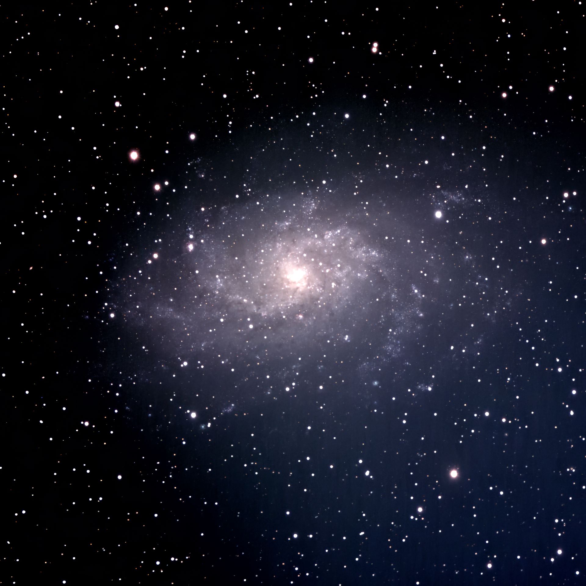Galaxy RA:01 33.9 DEC:+30 39 Triangulum Mag. 5.7 Classe Sc Surf.Brigh.14,2 Redshift Z=-0,000597- Speed 179 km/s Dist.0,88Mpc PGC 5818 NGC598,UGC 1117,MCG 5-4-69,CGCG 502-110,Triangulum galaxy Local Group;Pinwheel Galaxy;H V 17 round ZEN 150 TRIPLET APO f/6.5 Fl:979.7mm ZWO ASI432MM T:21.3 Gain:200 Filter: None Exp:6X900s Airmass 1.3 Moon 19.2gg 86.3% ill. (834) |
