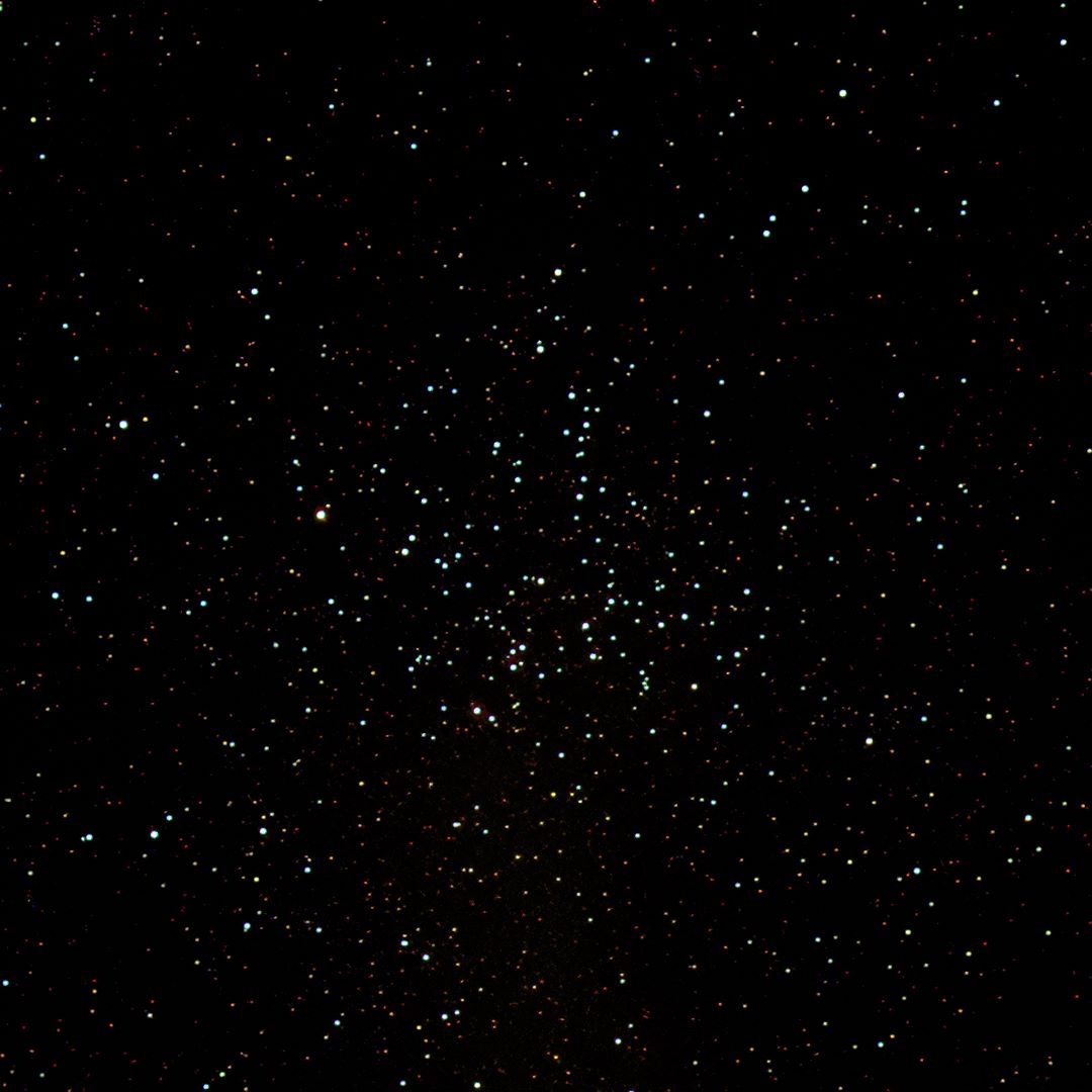 Open Cluster RA:05 28.7 DEC:+35 51 Auriga Mag. 6.4 Classe III 2 m Surf.Brigh.12 Dist.1,066Kpc NGC1912,OCL 433 in Aur OB1;Burnham-shaped like Greek letter Pi cluster bright very large irregular figure star or stellar large & small AP TRAVELER 105 EDF Fl:656.8mm ZWO ASI294MM Pro T:16.2 Gain:300 Filter: IR 240s R+G+B 240s Airmass 2.9 Moon 29.4gg 0.3% ill. (116) |