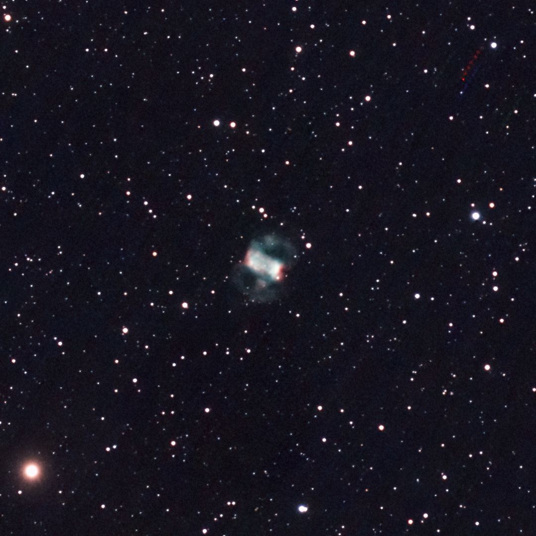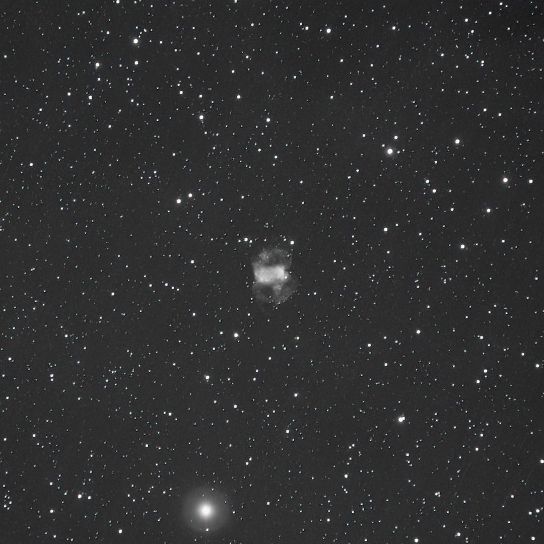 Planetary Nebula RA:01 42.3 DEC:+51 35 Perseus Mag.10.1 Classe 3(6) Surf.Brigh.10.4 Dist.1,043Kpc NGC650,PK 130-10.1,CS=17.0, Little Dumbbell (SW) Little Dumbbell or Cork Nebula;PK130-10.1 pretty preceding AP105 Fl:658.0mm ZWO ASI533MC Pro T:-8.0 Gain:300 Filter: LPRO Exp:1800s Airmass 1.2 Moon 6.3gg 29.4% ill. (201) |