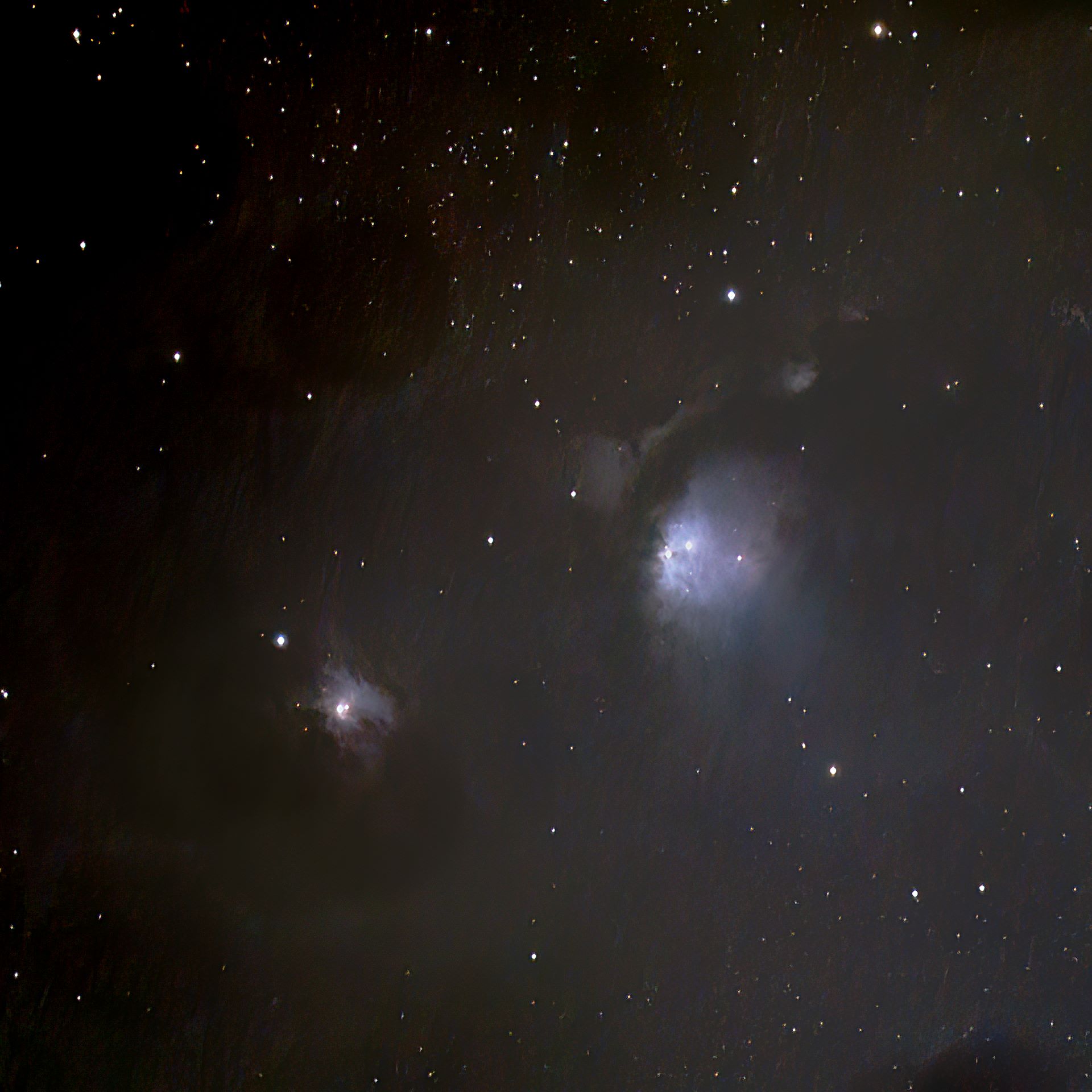 Bright Nebula RA:05 46.8 DEC:+00 05 Orion Mag. 8.0 Classe E Surf.Brigh.12 Dist.0,5Kpc NGC2068,DG 80 Comet shaped;2 10mag * invl; 53'' sep bright large involved very rich TEC140 TV 0,8X Fl:596.7mm ZWO ASI533MC Pro T:-10.0 Gain:300 Filter: IR Exp:8x900s Airmass 1.5 Moon 7.2gg 38.2% ill. (161) |