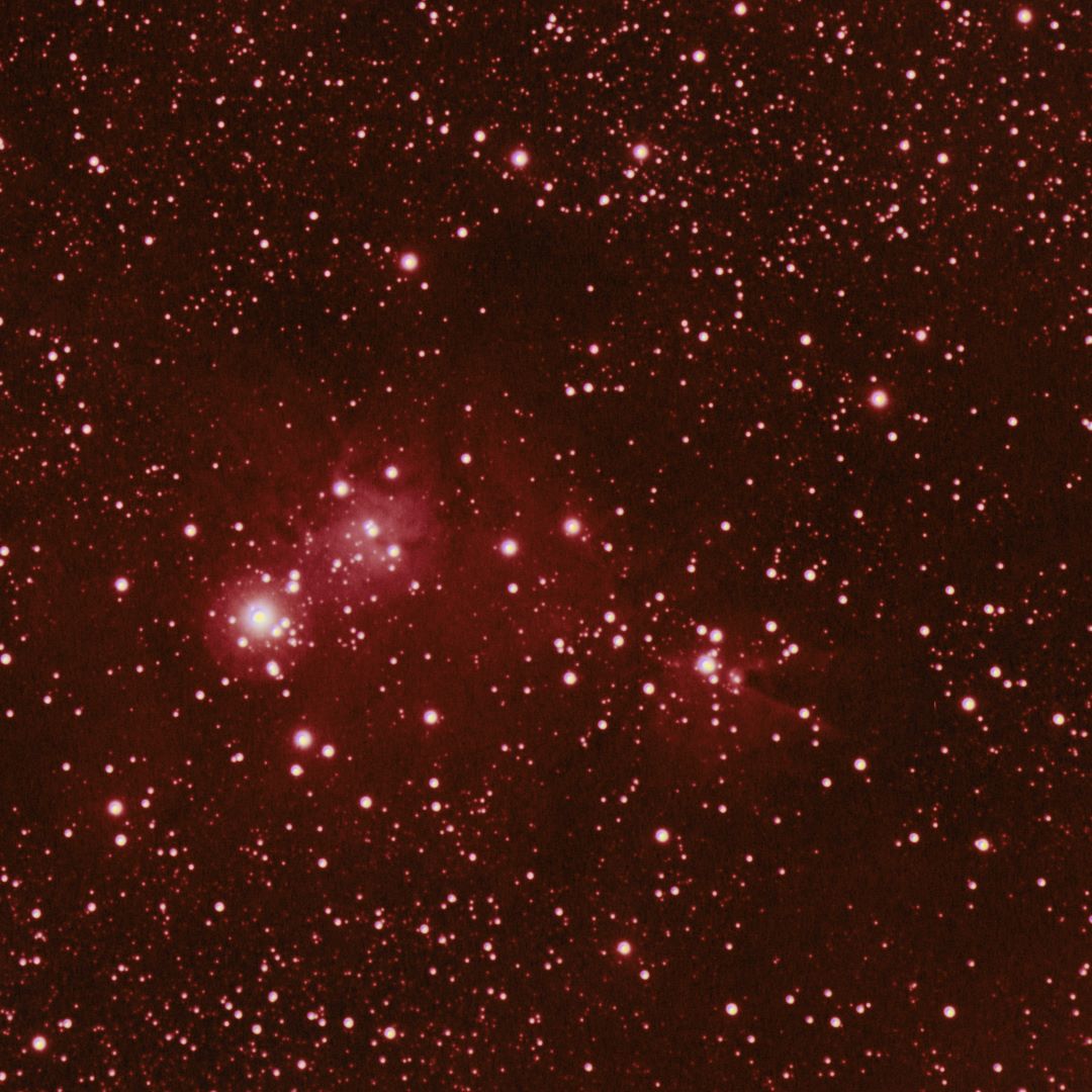 Extremely large Nebula, 3° Diameter Irregular Among, Diameter Extremely North-south Extremely Stars 12' South preceding 15 Middle (or in the middle) oNorth Cluster with Nebulosity RA:06 41.0 DEC:+09 54 Monoceros Mag. 3.9 Classe III 3 m n: Dist.0,66Kpc OCL 495,LBN 911,Christmas Tree cluster H V 27=H VIII 5; 20 * mags 6...10 w neby; Near Cone nebula(LDN 1613) nebula, nebulosity degrees diameter south preceding RASA8 Fl:400.0mm ZWO ASI294MM Pro T:10.9 Gain:200 Filter: None Exp:13x300s Airmass 0.0 Moon 1.5gg 0.0% ill. (409) |