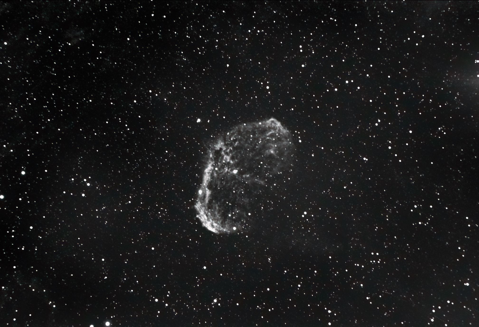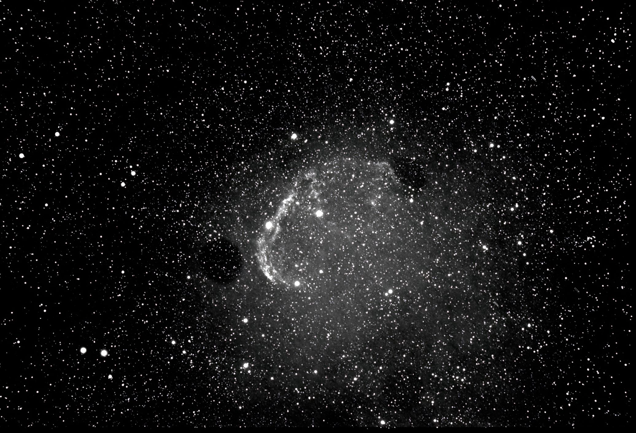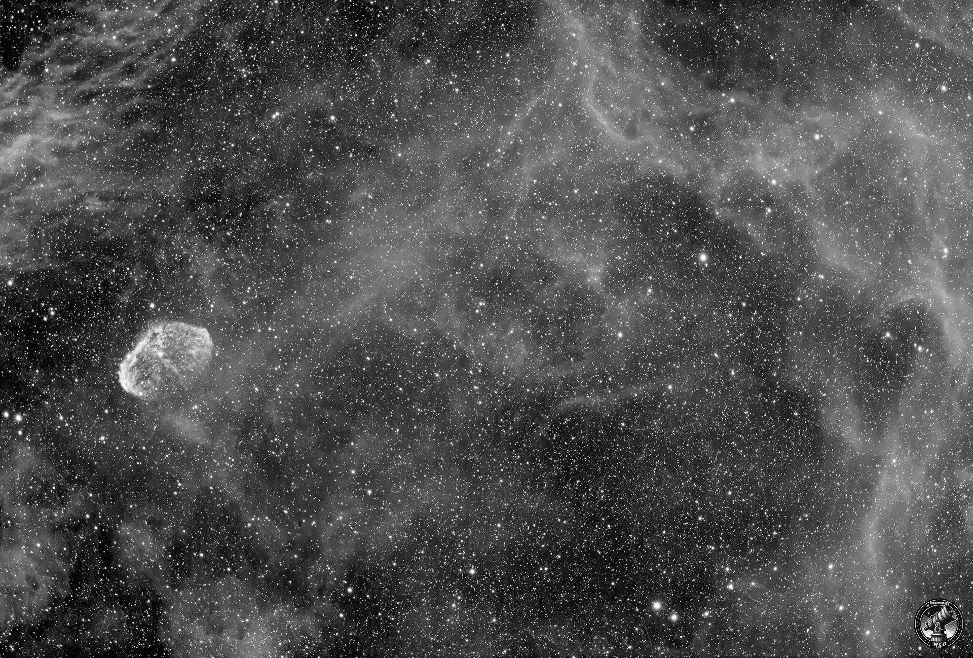 Faint, Very large, Very much extended, Double star Attached Bright Nebula RA:20 12.1 DEC:+38 21 Cygnus Mag.10.0 Classe E Dist.1,45Kpc LBN 203,Sh2-105,Crescent nebula H IV 72;Crescent Neb;Wolf-Rayet * invl faint very large attached VIXEN FL80S WT f/8 Fl:517.4mm ZWO ASI294MM Pro T:-10.0 Gain:300 Filter: Ha 1x900s 1x300s Airmass 1.4 Moon 1.3gg 1.1% ill. (98) |