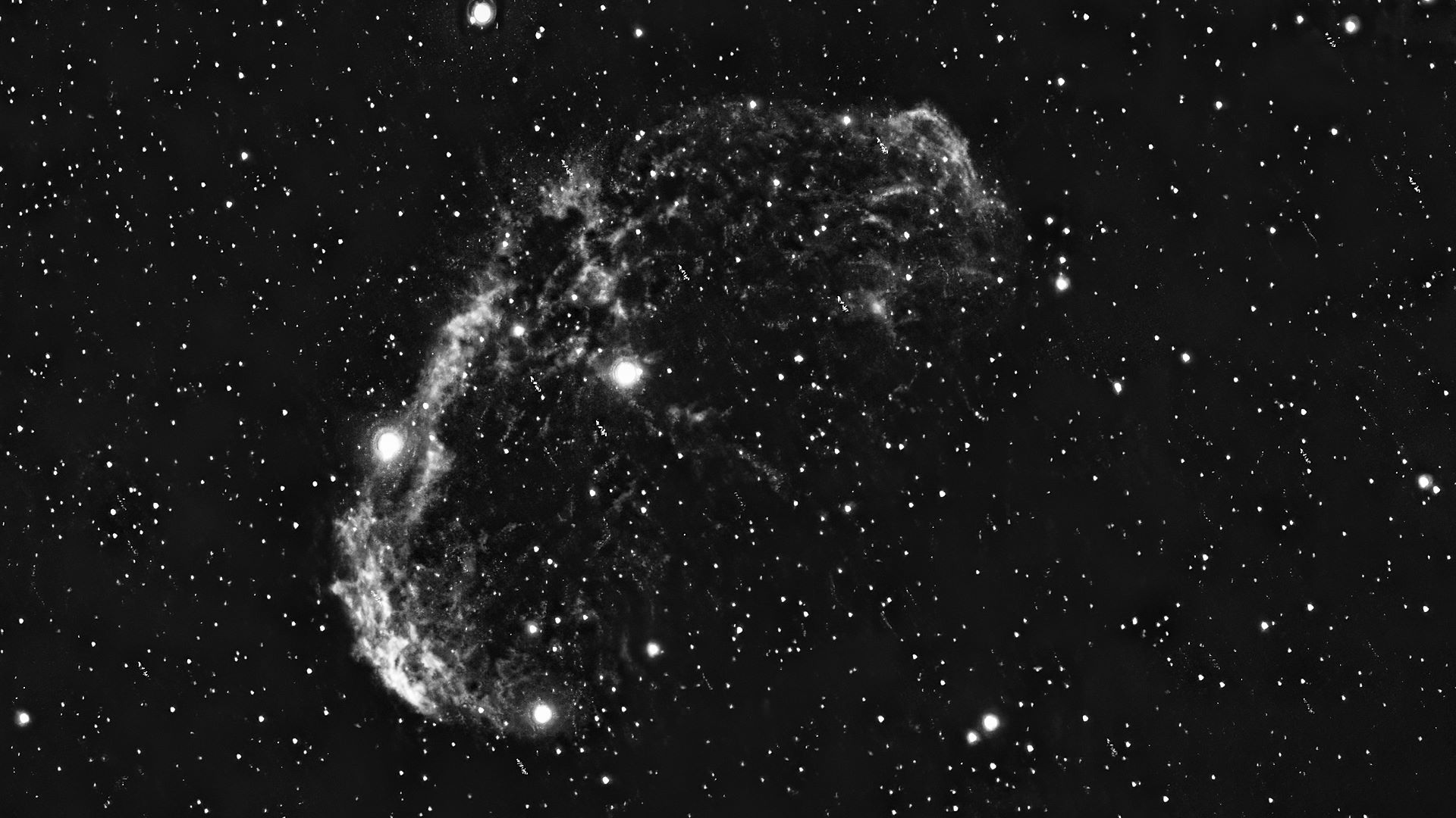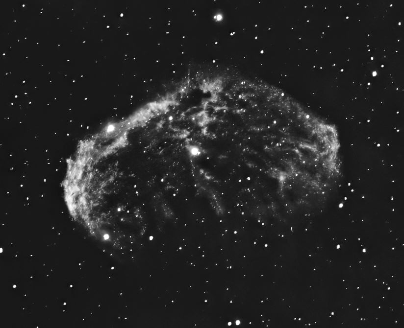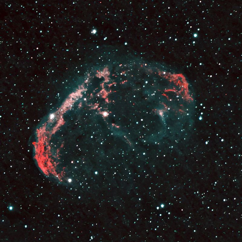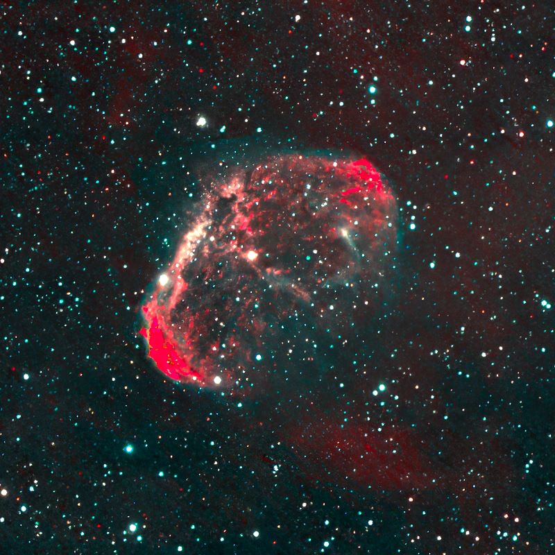 Faint, Very large, Very much extended, Double star Attached Bright Nebula RA:20 12.1 DEC:+38 21 Cygnus Mag.10.0 Classe E Dist.1,45Kpc LBN 203,Sh2-105,Crescent nebula H IV 72;Crescent Neb;Wolf-Rayet * invl faint very large attached WO 81 GT IV f/5.9 Fl:384.5mm ZWO ASI294MM Pro T:-10.0 Gain:300 Filter: Ha Exp:6x900s Airmass 1.2 Moon 19.8gg 77.2% ill. (62) |