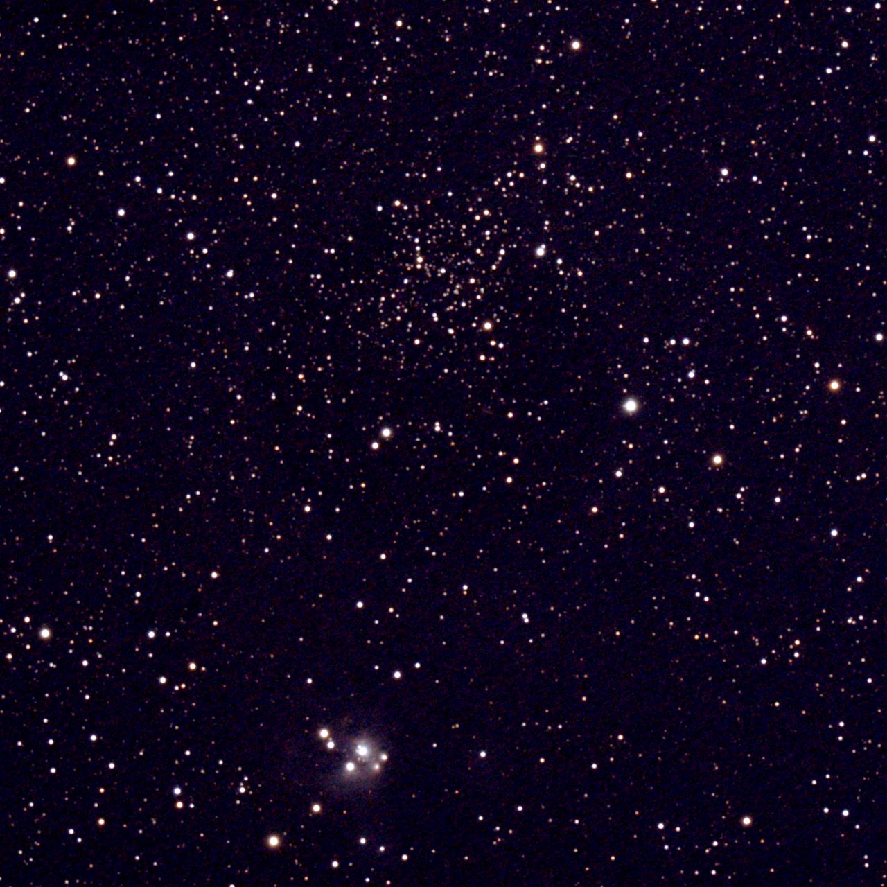 Remarkable, Considerably faint, Pretty Large, Gradually Brighter Middle (or in the middle) Triple star Cluster with Nebulosity RA:21 43.0 DEC:+66 07 Cepheus Mag.11.5 Classe IV 2 p n:b Dist.1,07Kpc IC 5134,LBN 497,OCL 240 H IV 75;Sev F * invl remarkable object pretty large WO 81 GT IV f/5.9 Fl:384.3mm Reducer: WO 0,8X Extender ZWO ASI533MC Pro T:-9.8 Gain:300 Filter: IR Exp:3xs Airmass 1.1 Moon 9.8gg 66.1% ill. (700) |