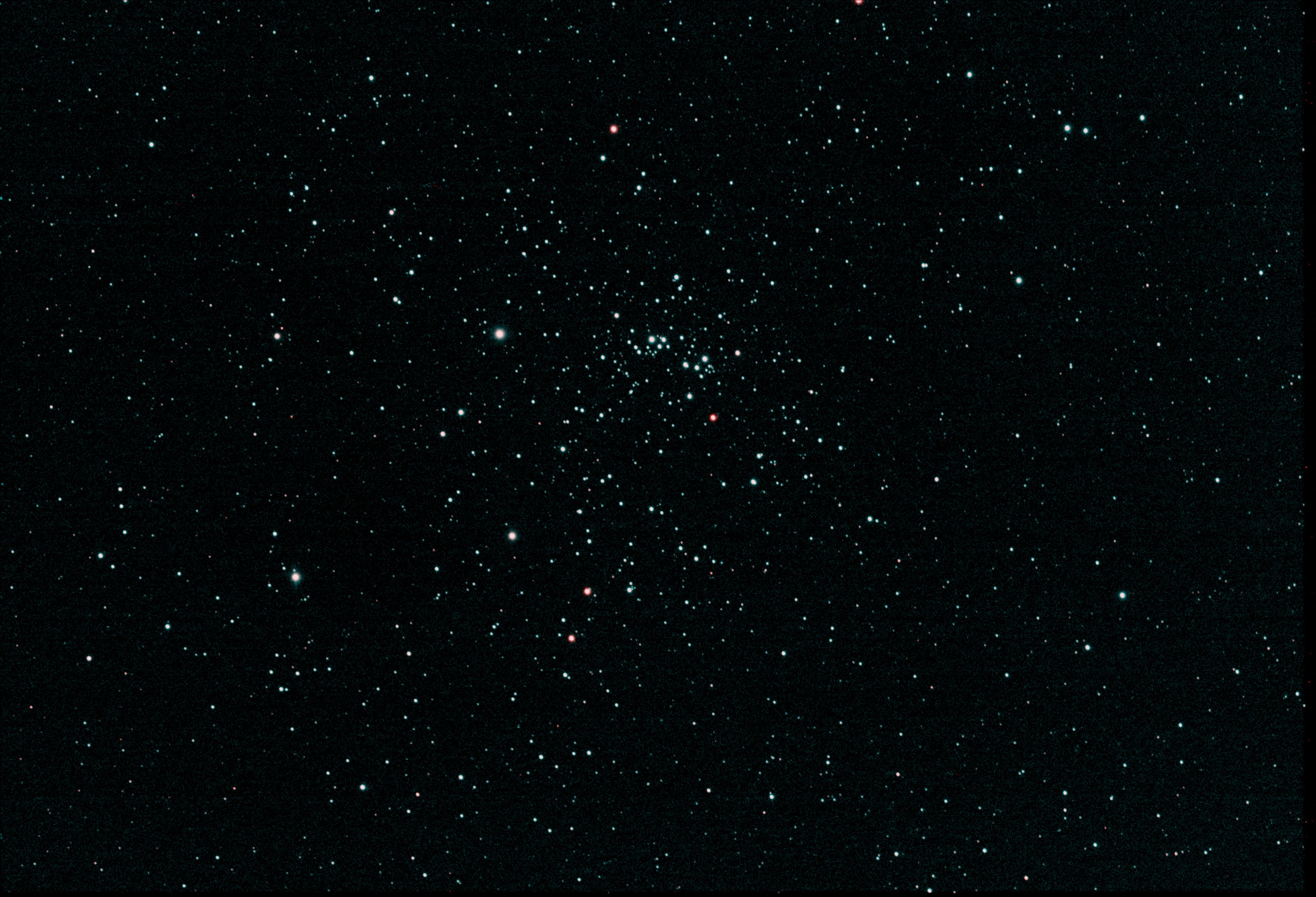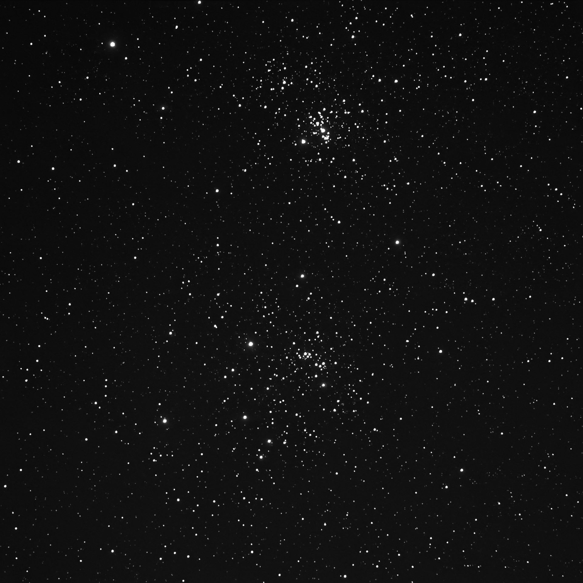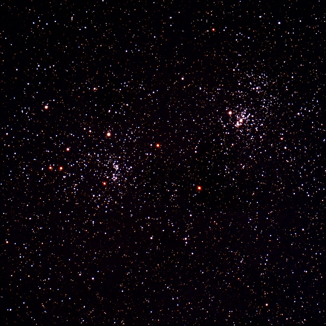 Remarkable Cluster, Very large, Very Rich, Resolvable (mottled, not resolved) uBrighter y Star Middle (or in the middle) Open Cluster RA:02 22.5 DEC:+57 09 Perseus Mag. 6.1 Classe I 3 r Dist.2,345Kpc OCL 353,Double cluster H VI 34;chi Per;in Per OB1;Double Cluster w NGC 869 cluster very large SHARPSTAR 65Q f/6.5 Fl:420.0mm ZWO ASI294MM Pro T:-10.0 Gain:300 Filter: LPRO Exp:4x300s Airmass 2.2 Moon 9.3gg 61.3% ill. (234) |